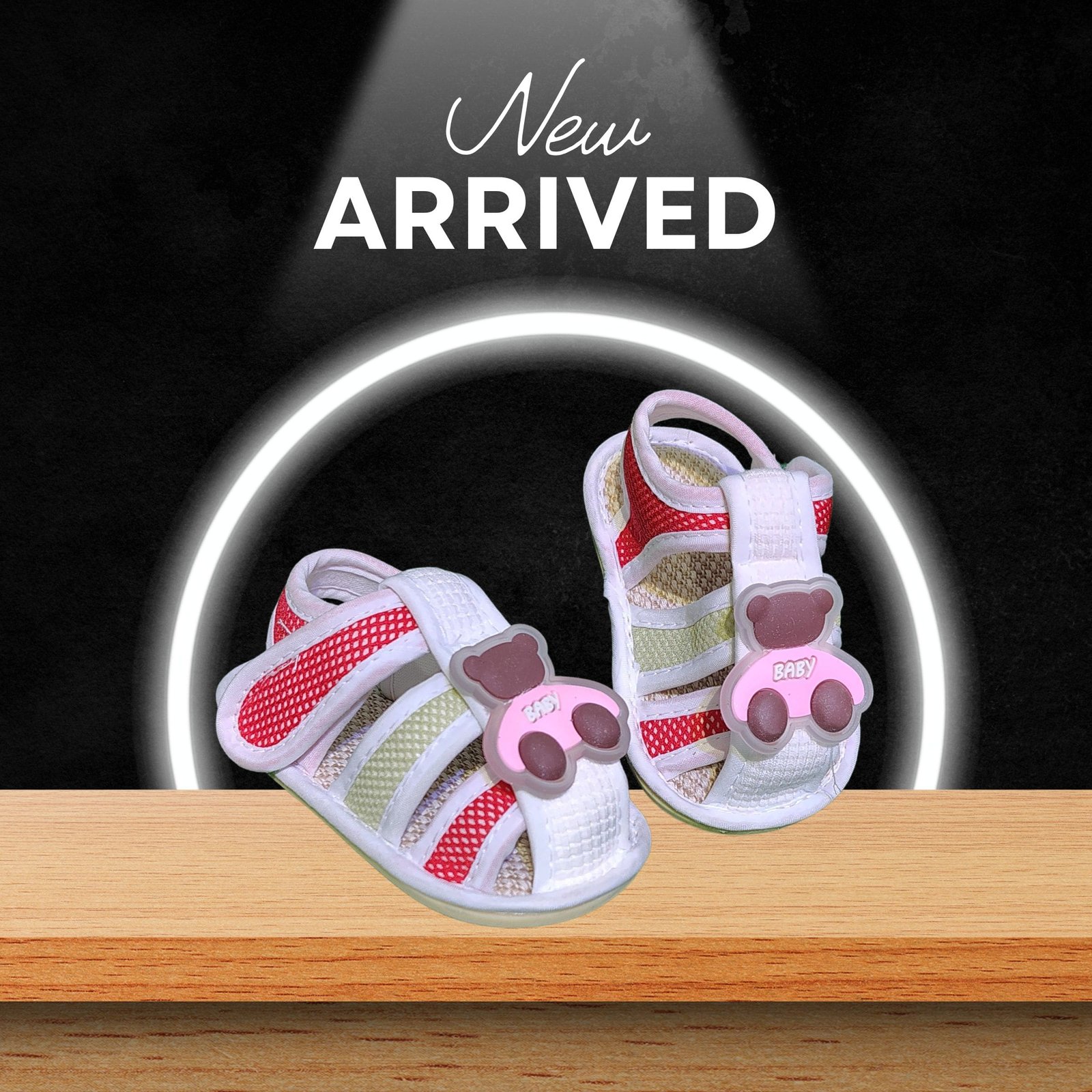 আপনার ছোট্ট রাজপুত্রের জন্য আরামদায়ক ও স্টাইলিশ স্যান্ডেল। এই ওপেন-টো স্যান্ডেলগুলোতে রয়েছে কিউট ‘বেবি কার’-এ বসা টেডি বিয়ারের ডিজাইন। নরম সোল এবং সুরক্ষিত ভেলক্রো স্ট্র্যাপ গরমে শিশুর পা রাখবে ঠাণ্ডা ও সুরক্ষিত। প্রথম হাঁটা শেখার জন্য এটি আদর্শ পছন্দ।