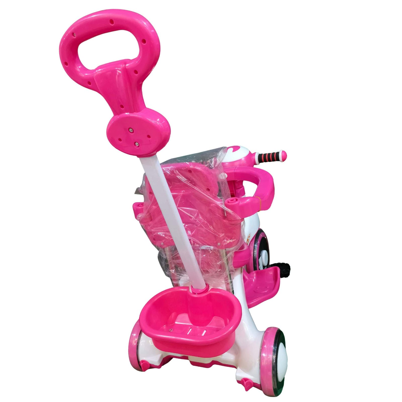 - আকর্ষণীয় লাইট ও মিউজিক (Attractive Lights & Music): ট্রাইসাইকেলটির সামনে লাইট এবং মজাদার মিউজিক যুক্ত করা হয়েছে। এটি শিশুদের মনোযোগ আকর্ষণ করে এবং তাদের খেলার অভিজ্ঞতাকে আরও আনন্দময় করে তোলে।