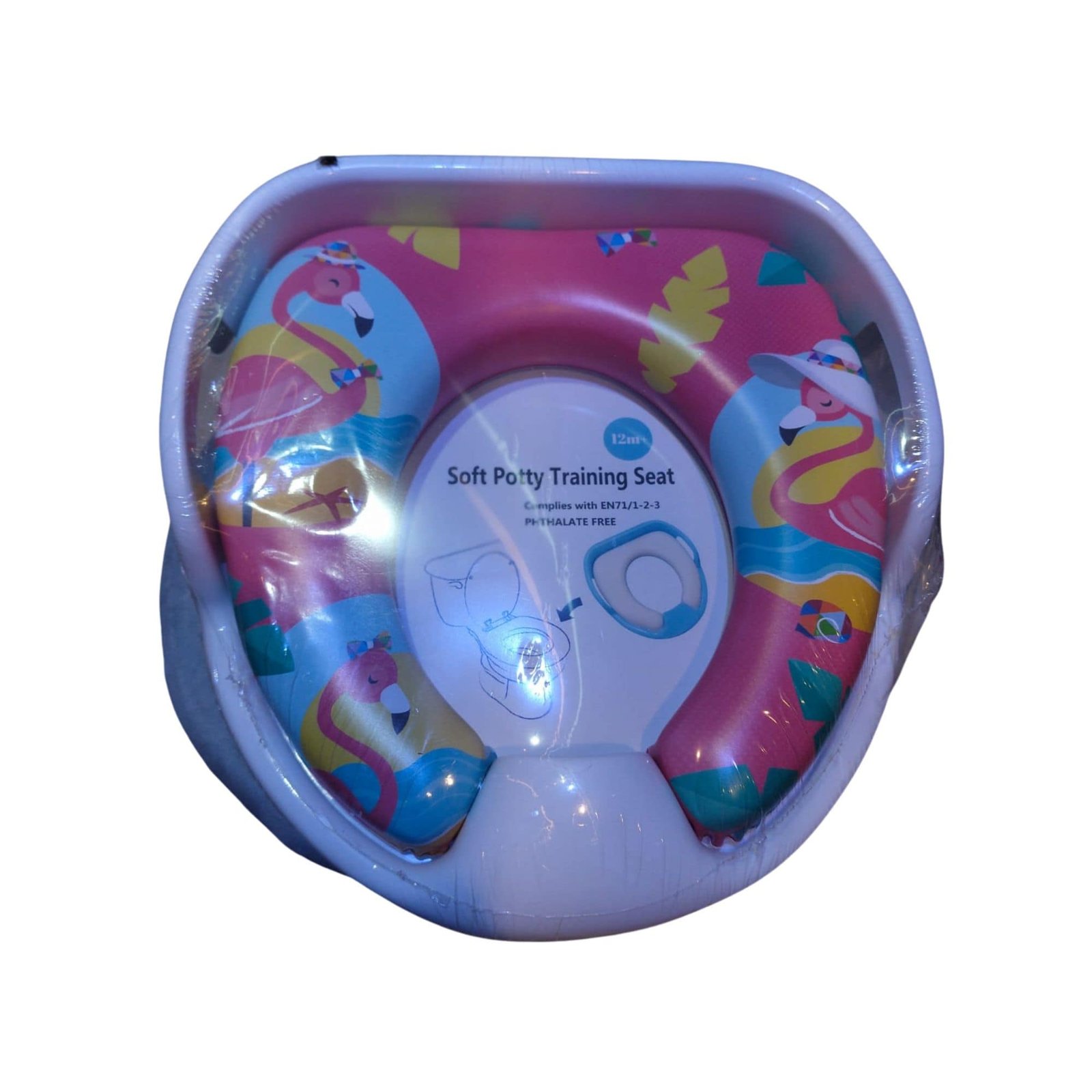 Soft Potty Training Seat শিশুদের জন্য নিরাপদ, আরামদায়ক এবং আকর্ষণীয় একটি টয়লেট ট্রেনিং সিট। ফ্লেমিংগো কার্টুন ডিজাইন বাচ্চাদের টয়লেট ব্যবহারে উৎসাহিত করে।