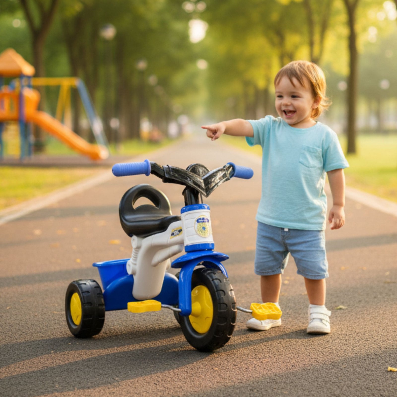 3. ব্যবহার: শিশুকে সিটে বসিয়ে হ্যান্ডল ধরতে এবং প্যাডেল চালাতে শেখান। তদারকি রাখুন।